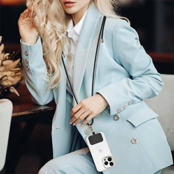 Uľahčite si život s praktickým, ale tiež štýlovým doplnkom pre Váš smartphone! Univerzálna šnúrka vyrobená z nylonu je to pravé pre všetkých, ktorí majú radi voľné ruky a zároveň chytrý telefón vždy pri sebe. Zlatý prívesok s logom GUESS dodáva tomuto doplnku elegantný vzhľad. Šnúrku o dĺžke 1.5m možno nastaviť podľa potreby, všetko čo potrebujete je smartphone s ochranným krytom.