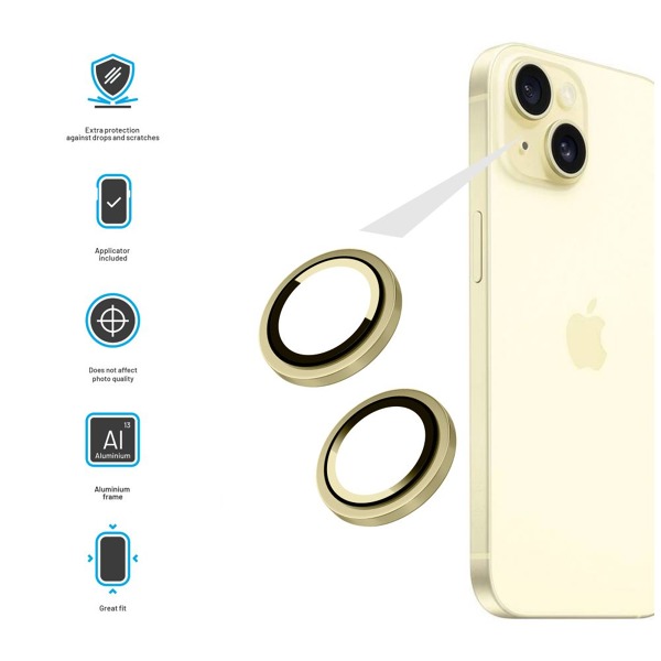 Krytoland púzdra a kryty na mobil > Kryty, obaly a ochranné sklá > iPhone > iPhone 15 Plus > Ochranné sklá > Ochranné sklá objektívov fotoaparátov FIXED Camera Glass pre Apple iPhone 15 Plus - Žlté
