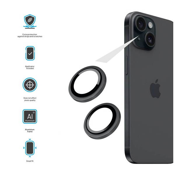 Ochranné sklá šošoviek fotoaparátov FIXED Camera Glass pre Apple iPhone 16, čierna