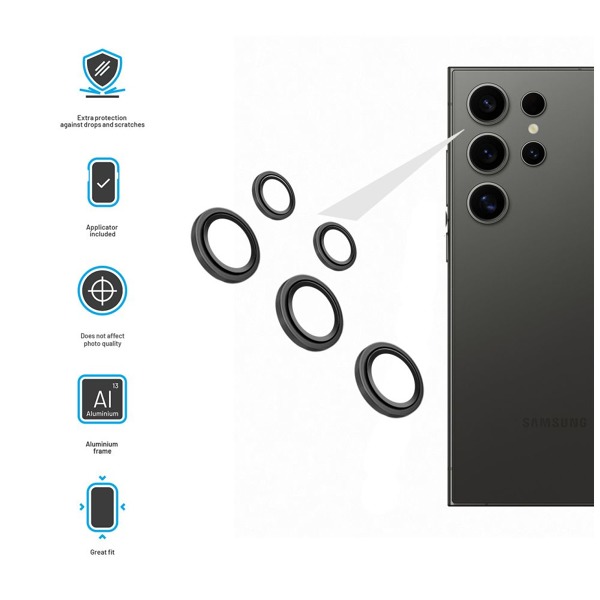 Ochranné sklá šošoviek fotoaparátov FIXED Camera Glass pre Samsung Galaxy S24 Ultra, čierna