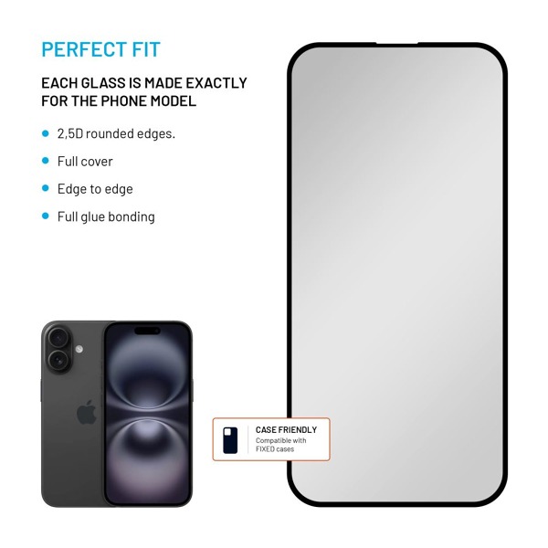 Krytoland púzdra a kryty na mobil > Kryty, obaly a ochranné sklá > iPhone > iPhone 16 > Ochranné sklá > Ochranné tvrdené sklo FIXED Privacy Full-Cover pre Apple iPhone 16, lepenie cez celý displej, čierne