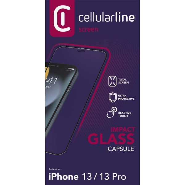 Krytoland púzdra a kryty na mobil > Kryty, obaly a ochranné sklá > iPhone > iPhone 13 > Ochranné sklá > Ochranné tvrdené sklo pre celý displej Cellularline CAPSULE pre Apple iPhone 13, čierne