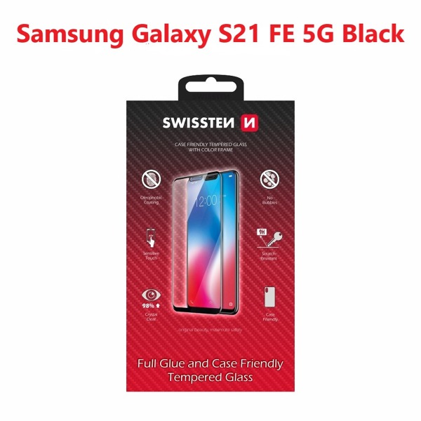 Krytoland púzdra a kryty na mobil > Kryty, obaly a ochranné sklá > Samsung > Samsung Galaxy séria S > Samsung Galaxy S21 FE 5G > Ochranné sklá > SKLO SWISSTEN FULL GLUE, COLOR FRAME, CASE FRIENDLY PRE SAMSUNG G990 GALAXY S21 FE 5G ČIERNE
