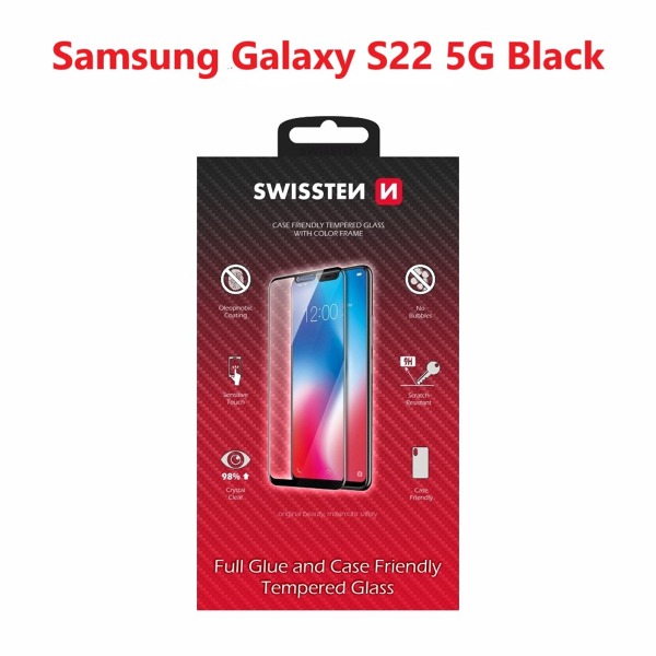 Krytoland púzdra a kryty na mobil > Kryty, obaly a ochranné sklá > Samsung > Samsung Galaxy séria S > Samsung Galaxy S22 5G > Ochranné sklá > Sklo SWISSTEN Full Glue, Color Frame, Case Friendly pre Samsung S901 Galaxy S22 5G čierne