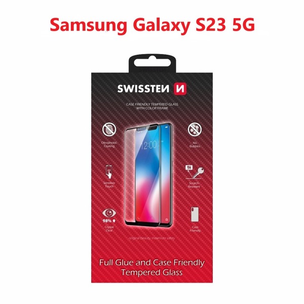 Krytoland púzdra a kryty na mobil > Kryty, obaly a ochranné sklá > Samsung > Samsung Galaxy séria S > Samsung Galaxy S23 > Ochranné sklá > SKLO SWISSTEN FULL GLUE, FAREBNÝ RÁM, CASE FRIENDLY PRE SAMSUNG S911 GALAXY S23 5G ČIERNE