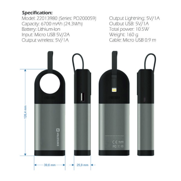 SWISSTEN 2v1 APPLE WATCH MFI POWER BANK 6700 mAh